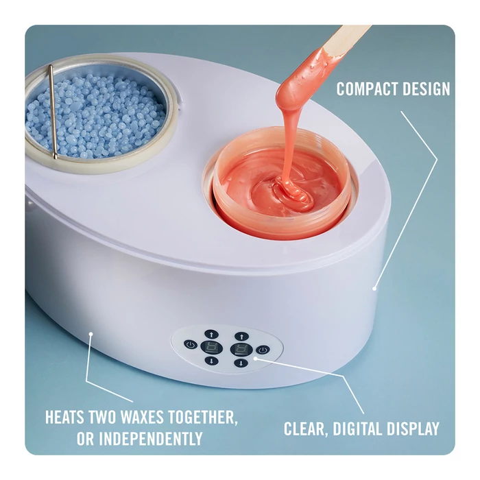 Stílusos, modern kialakítású dupla melegítő, mely lehetővé teszi a szakemberek számára, hogy egyszerre két különböző waxot melegítsenek fel, különböző hőmérsékleten, érintős, digitális vezérléssel.  A strip tégelyes wax közvetlenül a melegítőbe helyezhető. Kompakt kialakításának köszönhetően, ideális kisebb munkaállomásokhoz is.